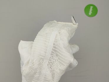 Biała bluzka damska Stradivarius, rozmiar S. - Krój bez rękawów z delikatnymi falbankami na ramionach - Zwiewna, półprzezroczysta tkanina z drobną fakturą (mikro kropki) - Warstwowy przód z lekkimi...