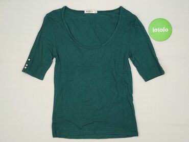Bluzka damska Stradivarius - Kolor: głęboka zieleń/smaragd - Rozmiar z metki: S (EUR S / USA S / MEX 26) - Fason: luźny, lekko wydłużony dół z zaokrągleniem - Dekolt: głęboki w serek z delikatnym ...