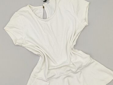 Bluzka damska Stradivarius - Kolor: biały/kość słoniowa - Rozmiar z metki: EUR S (USA S, MEX 26) - Fason: zwiewna, lekko rozkloszowana u dołu, z falbaną przy dolnej krawędzi - Rękawy: 3/4, lekko r...
