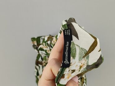 Bluzka damska Stradivarius – rozmiar M - Krój: koszulowy, zapinana na guziki z przodu - Rękawy: krótkie, bufiaste z elastycznymi gumkami - Kołnierzyk: klasyczny - Wzór: tropikalny/floralny na biały...