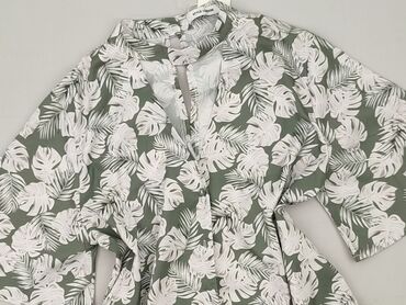 Bluzka damska RESERVED - Model: hiszpanka – dekolt opadający na ramiona z elastyczną gumką - Wzór: tropikalne liście w odcieniach zieleni na czarnym tle - Rękawy: długie, marszczone z wiązaniami p...