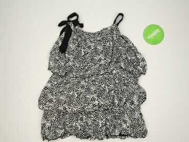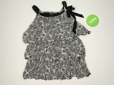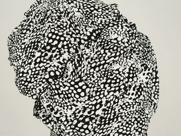 Bluzka damska YES NO, rozmiar M - Krój: luźna bluzka z krótkim rękawem, dekolt w serek, delikatne falbanki przy kołnierzu i na dole - Wzór: czarny materiał w drobne białe kropeczki z różanym motyw...