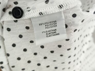 Biała bluzka w czarne grochy - Klasyczny wzór: gęste, równe kropki na białym tle - Delikatnie lejący, satynowy materiał z subtelnym połyskiem - Krótki rękaw typu cap - Okrągły dekolt z drobnymi za...Stan: