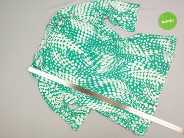 Bluzka damska z długim rękawem - Kolor: szałwiowa zieleń z nieregularnymi kropkami w bieli i czerni - Fason: luźniejszy krój, dekolt w serek - Detale: trzy dekoracyjne guziki przy dekolcie, zaokrą...Stan:
