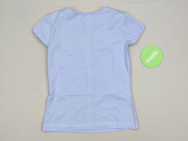 Bluzka damska w kolorze chabrowym z krótkimi, szerokimi rękawami wykończonymi ozdobną falbanką. Materiał to drobna dzianina z delikatnymi, ażurowymi zdobieniami na całej powierzchni. Okrągły dekolt...