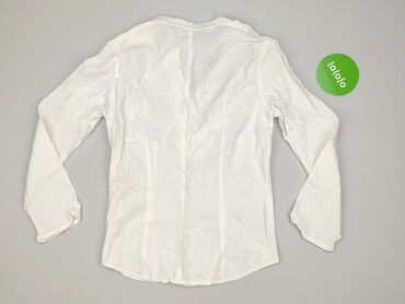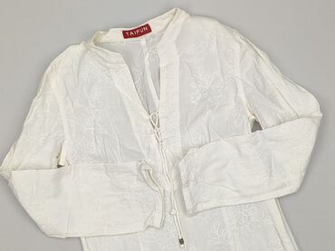 Bluzka damska TAIFUN - Kolor: biały w drobne szare kropeczki - Fason: luźny, lekko wydłużony dół, zaokrąglona linia brzegu - Dekolt: w serek z krótką listwą (bez guzików) - Rękaw: długi z możliwoś...