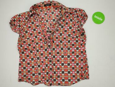 Bluzka damska TAIFUN - Krój: lekko luźny, prosty, z krótkim rękawem typu cap. - Dekolt: okrągły. - Zapięcie: małe zapięcie na guzik z tyłu przy karku (pętelka). - Wzór: intensywnie czerwone tło w ...