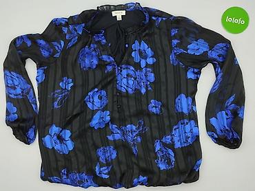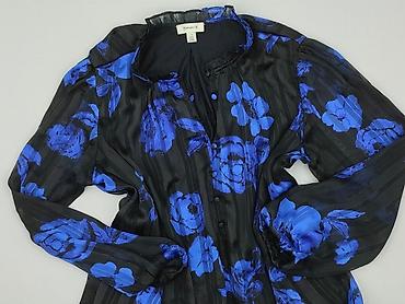 Bluzka damska z długim rękawem, w botaniczny wzór - Rozmiar z metki: 0XL - Krój: luźny, lekko wydłużony, zakrywający biodra - Dekolt: w serek z krótką listwą guzikową - Detale: pionowe zakładki/pl...