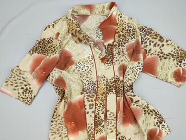 Koszula damska w kwiaty - Krój: luźny, prosty - Zapięcie: na guziki z przodu - Kołnierzyk: klasyczny - Rękaw: krótki (ok. do łokcia) - Materiał: cienka, lekka tkanina o subtelnej, lekko kreszowane...