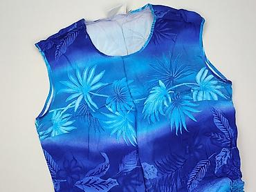 Bluzka damska bez rękawów w intensywnym kobalcie - Fason: luźny, swobodnie opływający sylwetkę, lekko asymetryczny dół - Dekolt: okrągły - Rękawy: brak; ozdobne, plisowane falbany na ramionach dod...