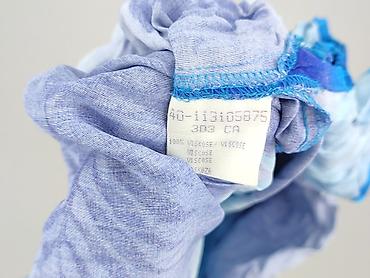 Bluzka damska o luźnym kroju z półprzezroczystej, lekkiej tkaniny. Biały materiał zdobiony akwarelowym, kwiatowym nadrukiem w odcieniach niebieskiego i granatu. - Dekolt okrągły - Rękawy do łokcia...