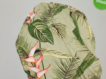 - Wzór: tropikalny print – zielone liście i kwiaty w odcieniach różu na jasnooliwkowym tle