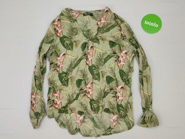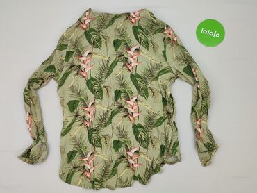 Damska bluzka z dekoltem w kształcie litery V, z długimi rękawami zakończonymi ściągaczami. Bluzka ma wzór tropikalny z liśćmi palmowymi i pomarańczowo-różowymi kwiatami. Luźny krój zapewnia komfor...Stan:
