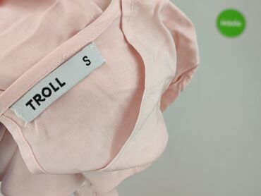 Bluzka damska TROLL, rozmiar S/M. - Krój: dopasowany, z krótkim rękawem - Dekolt: półgolf/stójka zapinana z tyłu na kryty suwak - Materiał: 100% poliester (metka) - Tkanina: miękka, fakturowana z ...