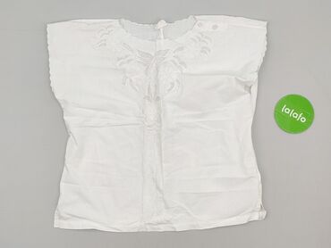 Biała ażurowa bluzka damska z haftem angielskim - Krój: luźny, prosta linia, lekko rozszerzany dół - Dekolt: V - Rękaw: krótki - Zapięcie: guziki z przodu (częściowe) - Tkanina: przewiewna bawełna...Stan: