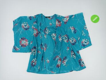 Krótki rękawBluzka damska o kroju kimonowym w odcieniu turkusowym, ozdobiona wielobarwnym wzorem kwiatowym. Posiada szerokie, luźne rękawy, co nadaje jej swobodny i przewiewny charakter. Idealna na co dzień, na cieplejsze dni lub jako element letniej stylizacji. Wzór na tkaninie dodaje bluzce unikatowego wyglądu.