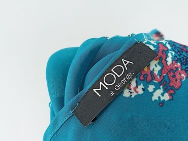 Bluzka damska z krótkim rękawem, w drobny, pastelowy wzór listków na turkusowym tle. Lekka, przewiewna tkanina o delikatnym, gładkim chwycie. Luźny, prosty krój z zaznaczoną talią troczkiem/ściągac...