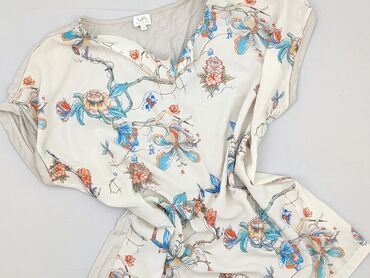 Bluzka damska z kwiatowym nadrukiem - Krój: luźny, z krótkim rękawem typu kimono, okrągły dekolt - Przód: gładka tkanina z intensywnym, wielokolorowym nadrukiem kwiatów (odcienie niebieskiego, zie...