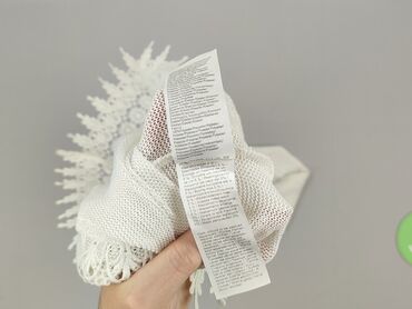 - Materiał: ażurowa, lekko siateczkowa dzianina; skład z metki: 70% wiskoza, 30% nylon; koronka: 100% poliester