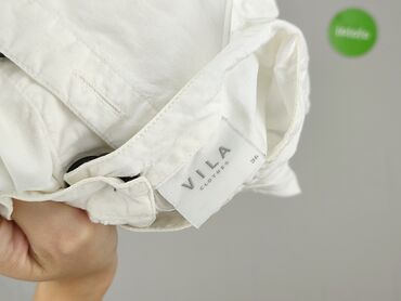 Biała bluzka VILA, rozmiar EU 40. - Fason prosty, lekko wydłużony tył. - Okrągły dekolt. - Krótkie rękawy z mankietem. - Górny pas z półtransparentnej tkaniny (zarówno z przodu, jak i z tyłu), dół ...