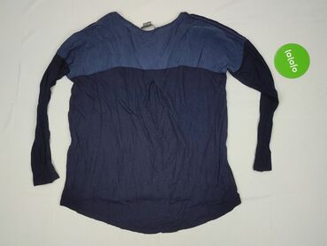Bluzka damska z długim rękawem - Kolor: granatowy - Fason: luźny, lekko opadające ramiona - Dekolt: w kształcie litery V - Rękawy: długie, zakończone delikatną gumką - Ramiona: wstawki z marszczen...