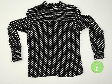 Bluzka damska MYHAIL’S, rozmiar L - Kolor: czarny w drobne białe kropki (grochy) - Krój: swobodny, lekko wydłużony dół - Dekolt: okrągły z delikatną zakładką na środku - Rękawy: długie, lekko bufi...