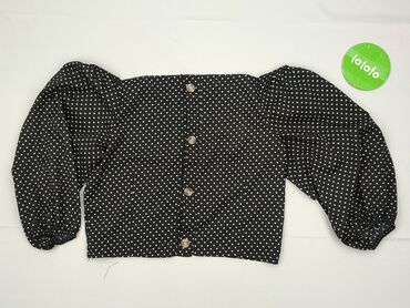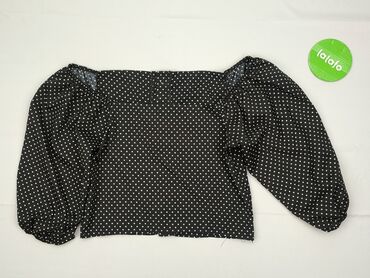 Czarna bluzka w białe groszki, damska, rozmiar S (small). - Fason: dopasowany do talii, delikatne marszczenia z przodu, lekko falujący dół. - Dekolt: w kształcie litery V. - Rękawy: długie. ...
