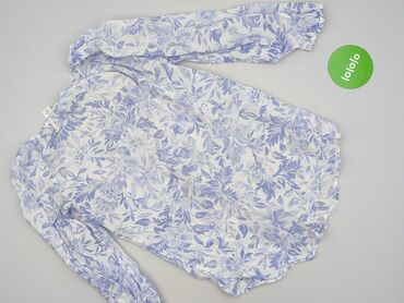 Damska koszula w kwiatowy wzór - Materiał: cienka, lekka tkanina (przewiewna, miękko układająca się) - Kolor bazowy: jasny błękit; wielobarwny nadruk kwiatowo‑ornamentalny (odcienie zieleni, żółci...