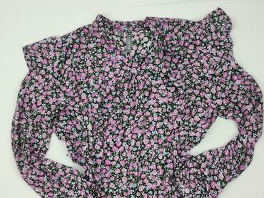 - Wzór: gęsty kwiatowy print – róże w odcieniach fuksji, różu i błękitu na czarnym tle