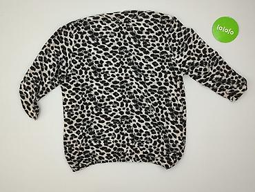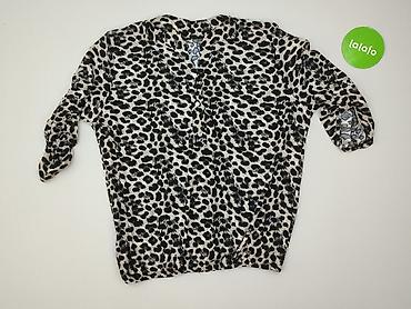 Bluzka damska Tout Simplement, rozmiar 42/44. - Wzór: panterka (czarno‑szare cętki) na jasnym tle. - Dekolt w kształcie litery V. - Długie rękawy. - Materiał elastyczny, drobno prążkowany, miękki ...
