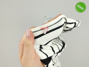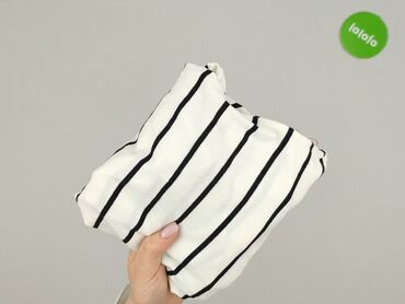 Bluzka damska w paski – rozmiar M - Krój: prosty, z okrągłym dekoltem - Rękawy: krótkie, z ozdobnymi wiązaniami po obu stronach - Wzór: biało‑czarne poziome paski (styl marynistyczny) - Materiał: ...