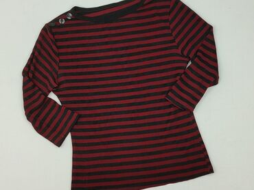 Bluzka damska w paski, długi rękaw. - Kolor: bordo z białymi, wąskimi poziomymi paskami - Krój: prosty, z okrągłym dekoltem - Rękawy: długie - Długość: do bioder - Materiał: cienka, miękka dzianina...Stan:
