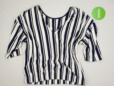 Bluzka damska w paski, z długim rękawem - Krój: kopertowy dekolt z marszczeniem/przeszyciem w talii, lekko rozkloszowany dół - Wzór: granatowo-białe, poziome paski (styl marynistyczny) - Rękawy: d...