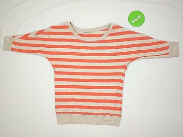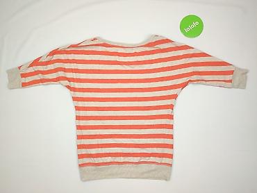 Damska bluzka w paski, długi rękaw. - Krój: prosty, z okrągłym (łódkowym) dekoltem - Wzór: poziome paski w kolorze koralowym i ecru - Rękawy: długie - Długość: do bioder - Materiał: miękka, elasty...Stan: