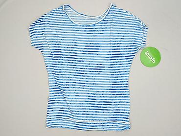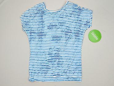 Bluzka damska CELLBES Woman - Rozmiar z metki: 38/40 - Krój: luźny, z krótkim rękawkiem typu kimono/cap - Dekolt: okrągły - Wzór: nieregularne granatowo-białe pasy (efekt „zebrę”/geometryczny) - D...