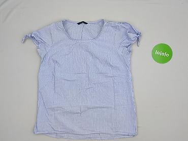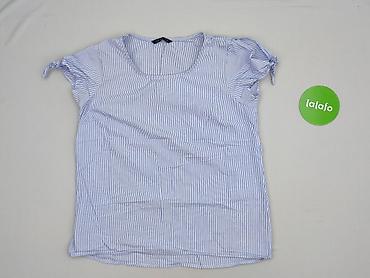 Bluzka damska HOUSE, rozmiar M - Krój: luźny T-shirt z okrągłym dekoltem - Rękawy: krótkie, z dekoracyjnymi wiązaniami na ramionach - Wzór: białe tło w niebieskie pionowe paski, nadruk ptaków na c...