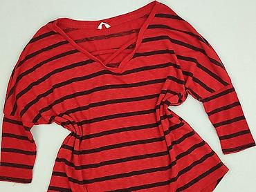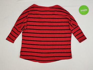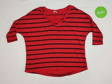 Bluzka damska w paski - Kolor: czerwony z czarnymi, poziomymi paskami - Krój: luźny, z obniżoną linią ramion - Dekolt: w kształcie litery V z ozdobnymi krzyżującymi się paseczkami - Rękaw: 3/4 - R...Stan: