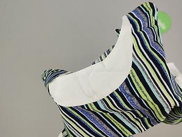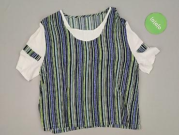 Damska bluzka w paski - Fason: luźny, z opuszczoną linią ramion; krótkie rękawki typu kimono - Dekolt: okrągły - Zapięcie/dekor: rząd guzików wzdłuż obu ramion - Wzór: poziome paski w kolorach gra...Stan: