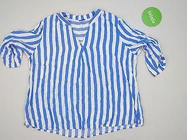 Bluzka damska w paski - Krój: luźny, z opuszczoną linią ramion - Rękaw: długi - Dekolt: w kształcie litery V - Wzór: poziome paski biało‑kobaltowe (marynarski styl) - Długość: sięga do bioder, del...