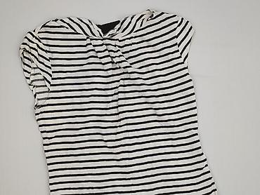 Bluzka damska House, rozmiar XS - Kolor: biały w cienkie, pionowe paski w odcieniu szaro-czarnym - Krój: luźny, oversize z obniżoną linią ramion; delikatnie krótszy, lekko marszczony przód - Dekol...