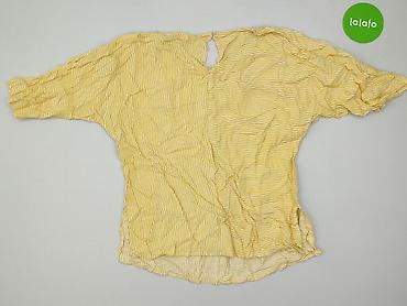 Bluzka damska w kolorze intensywnej żółci. - Fason: prosty, luźniejszy krój z krótkim rękawem typu kimono - Dekolt: okrągły - Rozmiar: S (z metki) - Detale: wszyty pasek/troczki po bokach do przew...