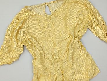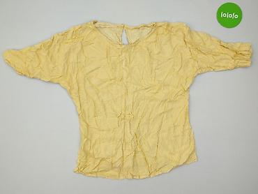 Żółta bluzka damska z lekkiej, ażurowej dzianiny z podszewką. - Krój: luźny, z wydłużonym tyłem (asymetryczny dół – krótszy przód, dłuższy tył). - Rękawy 3/4 z możliwością podpięcia na guzik. - De...