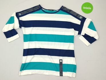 Bluzka damska CECIL, rozmiar M. - Kolor: granatowy w białe, poziome paski - Rękaw: 3/4 - Dekolt: łódkowy/zaokrąglony - Fason: swobodny, lekko wydłużony, dół wykończony szerszym pasem w paski - Mate...Stan: