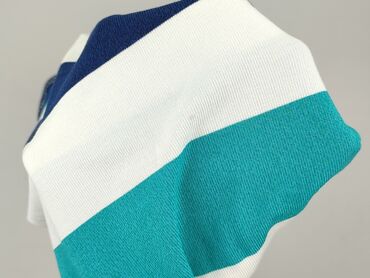 - Wzór: poziome szerokie pasy w kolorach bieli, granatu i turkusu