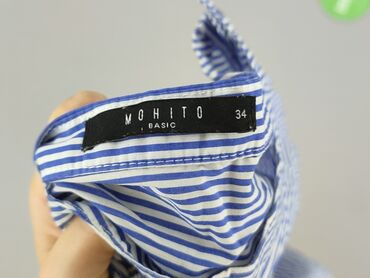 Bluzka damska Mohito Collection, rozmiar 34. - Wzór: pionowe paski w odcieniach różu, bordo, czerni i jasnego różu. - Krój: lekko luźny, zaokrąglony dół, rozcięcia po bokach. - Dekolt: okrągły z ma...