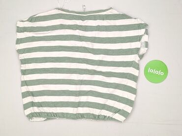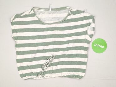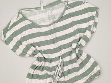 Bluzka damska Moodo, rozmiar M. - Fason: luźna, z krótkim rękawem typu kimono, zaokrąglony dół. - Przód: tkanina z nadrukiem w pasy łączące motywy geometryczne, groszki i drobne kwiaty; odcienie g...