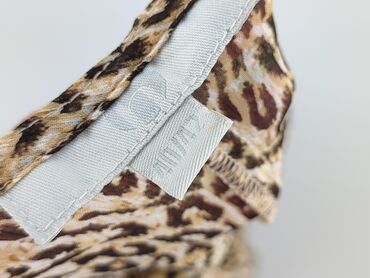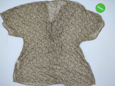 Bluzka damska w zwierzęcy print (panterka) - Krój: luźny, z krótkim rękawem, zaokrąglony dół - Wzór: czarne i brązowe cętki na jasnym tle - Materiał: 100% wiskoza (informacja z metki) - Tkanina lek...