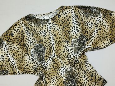 Bluzka damska z nadrukiem w panterkę - Kolor: złocisty/miodowy z czarnym wzorem leopard - Krój: luźny, z obniżoną linią ramion (nietoperz), lekko zwężana ku dołowi - Rękaw: 3/4 - Dekolt: okrągły -...