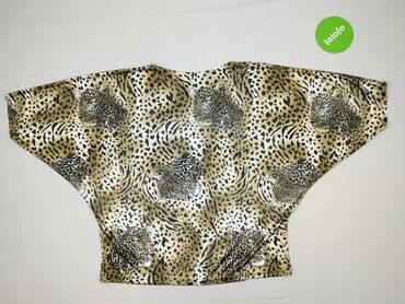 Bluzka damska w panterkę - Krój luźny, swobodnie opływający sylwetkę - Dekolt okrągły - Rękawy 3/4 z wiązaniami przy mankietach - Tył z pionowym przeszyciem pośrodku - Dół delikatnie zaokrąglony, ...Stan: