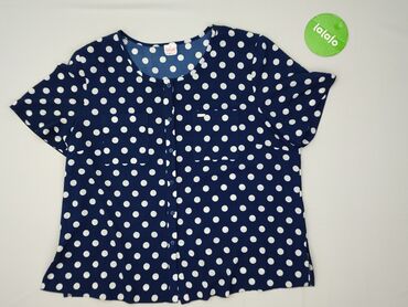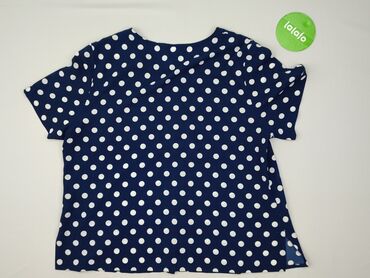 Bluzka damska w groszki - Kolor: granatowy z białymi kropkami - Krój: luźny, z krótkim rękawem - Dekolt: okrągły z trzema ozdobnymi wycięciami z przodu - Materiał: 100% bawełna (metka) - Rozmiar z...